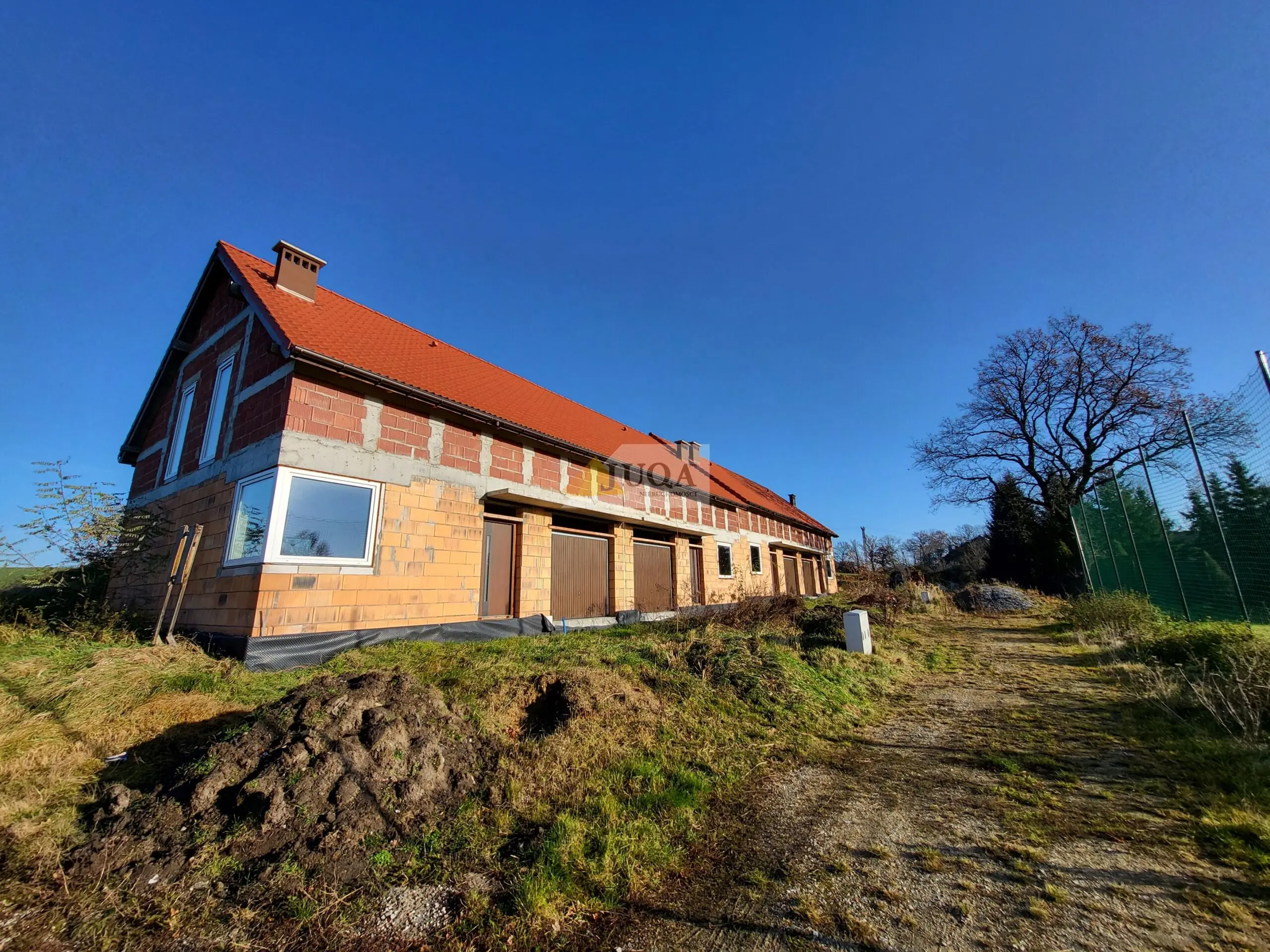 * Pierwszy etap inwestycji to kompleks 4 nowoczesnych i ekonomicznych domów w zabudowie bliźniaczej z ogrodem , garażem i miejscem parkingowym dla każdego budynku.