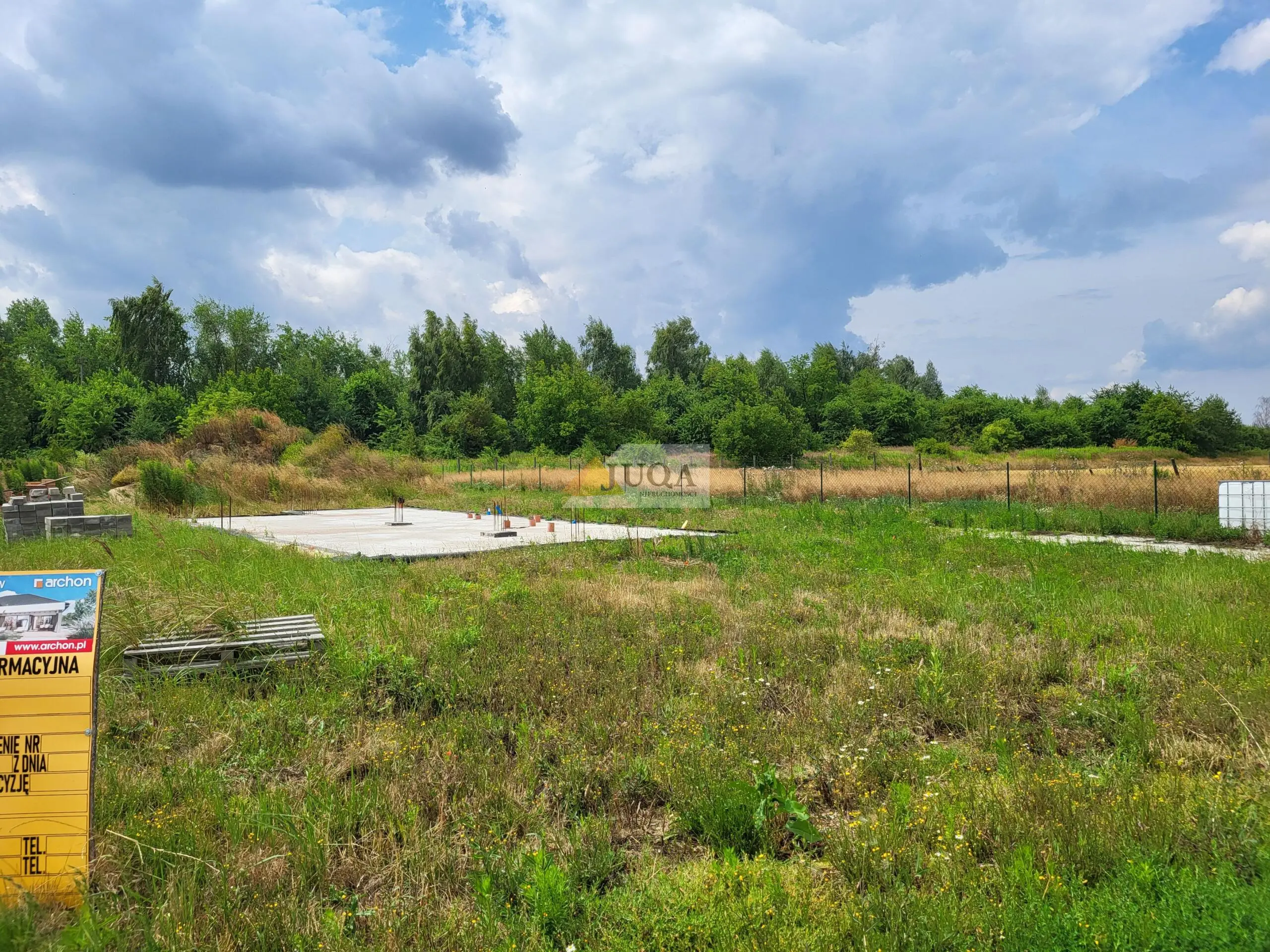 Na sprzedaż działka budowlana 1000 m² z fundamentami pod bardzo ładny projekt domu – spokojna okolica, obok szkoły.